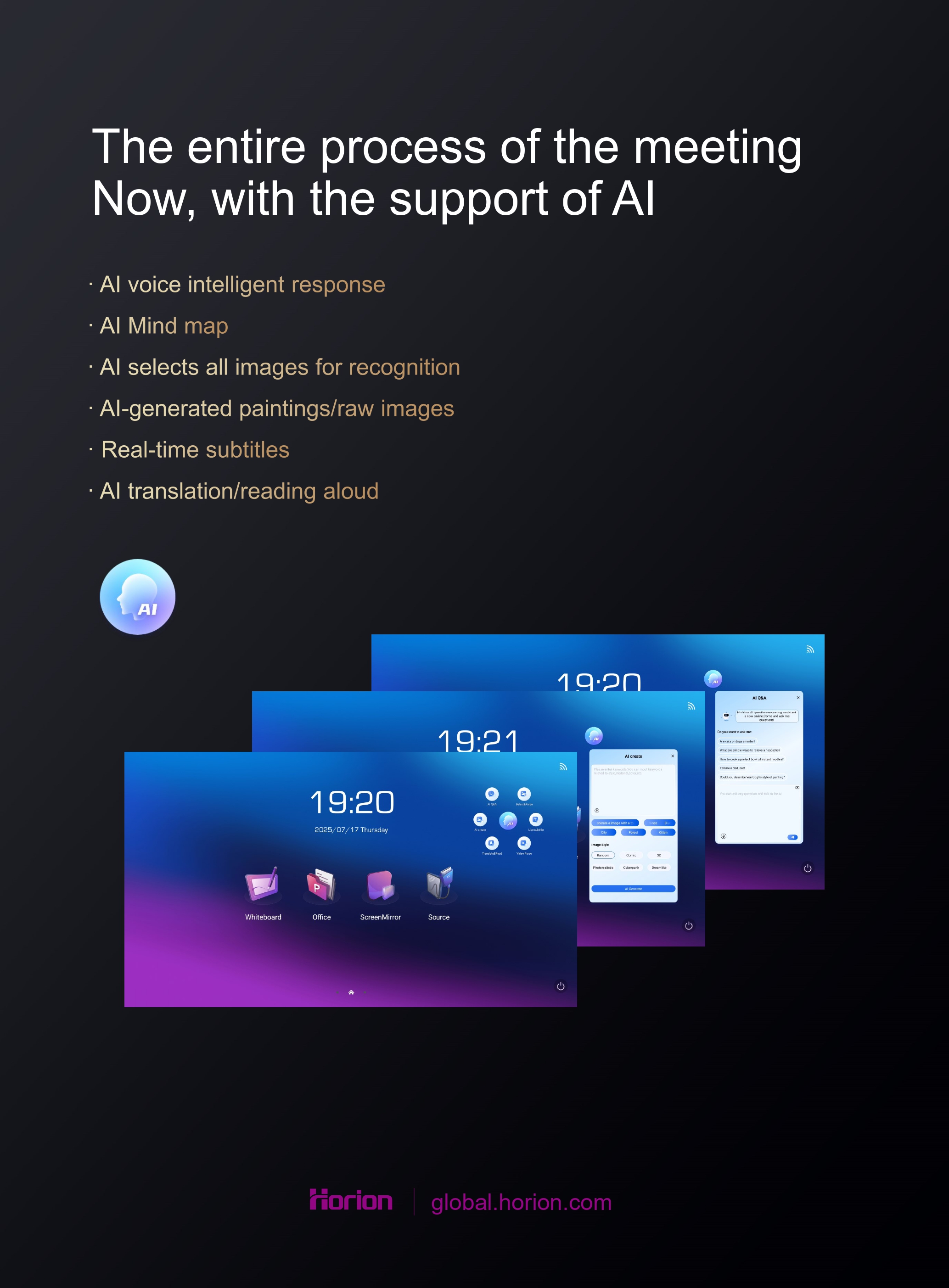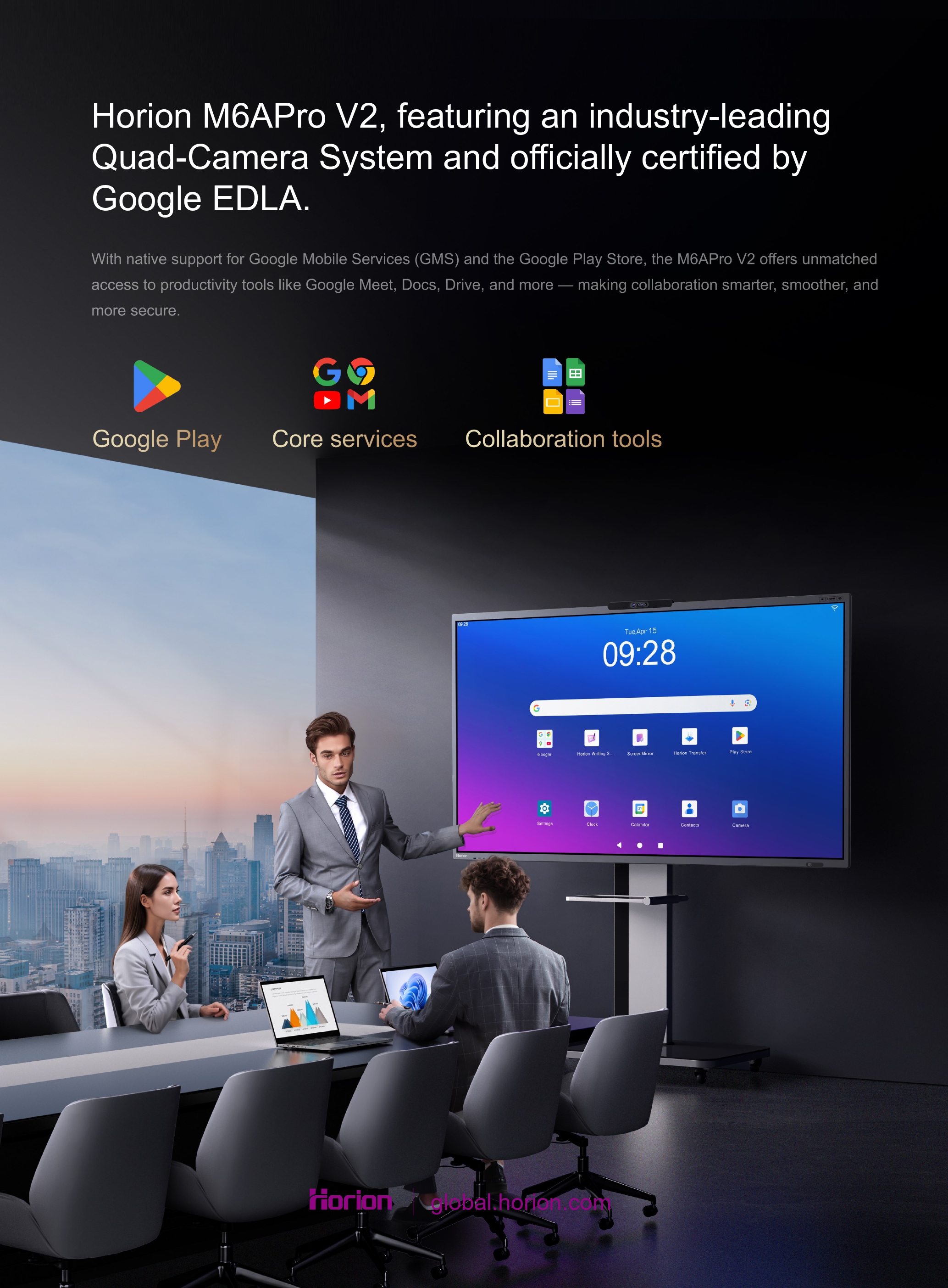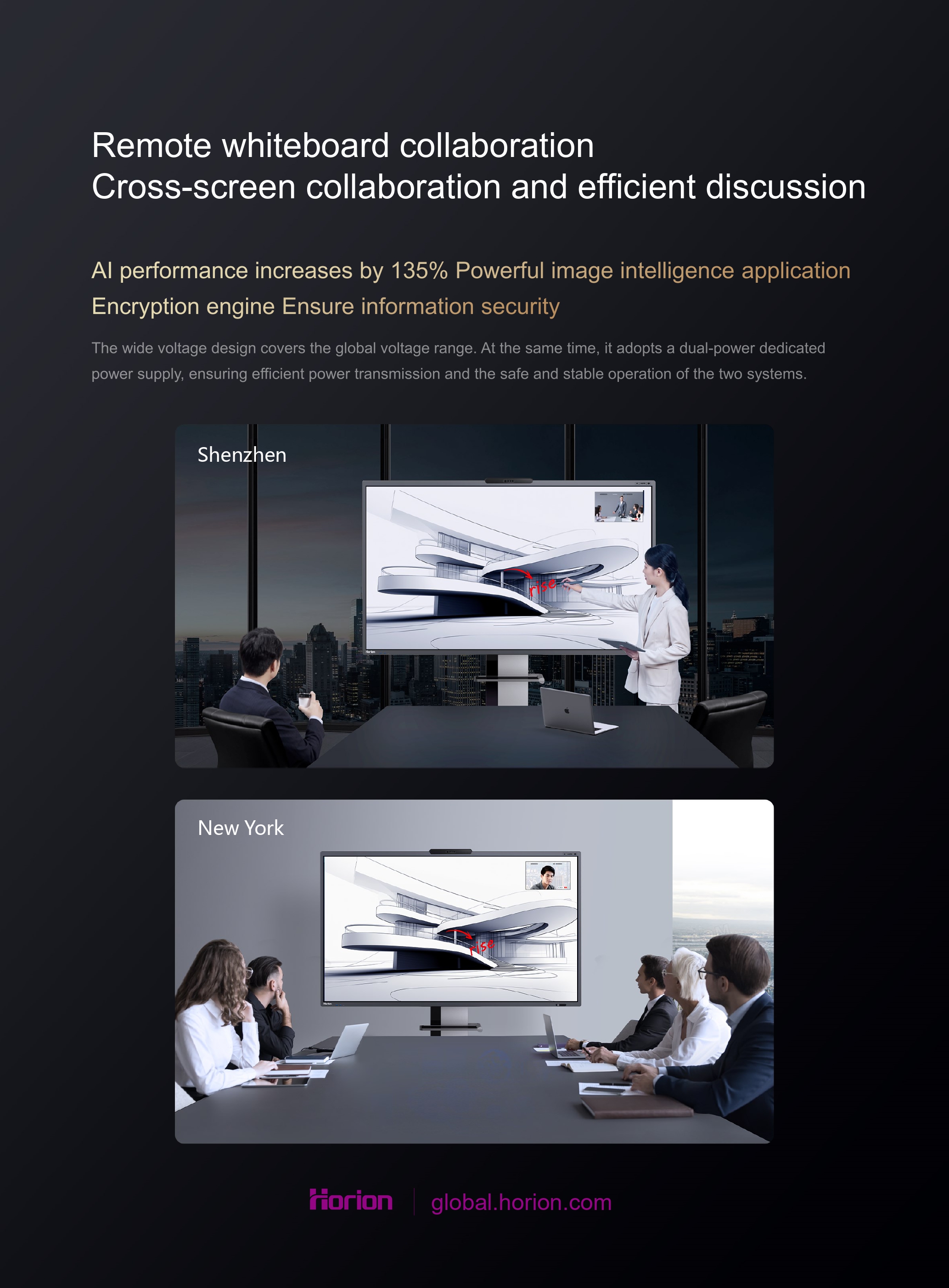 Menyokong paparan 4K, membolehkan mirroring skrin laptop ke Horion Interactive Flat Panel dengan mud..
